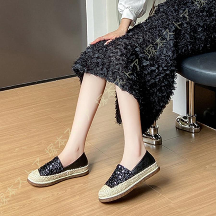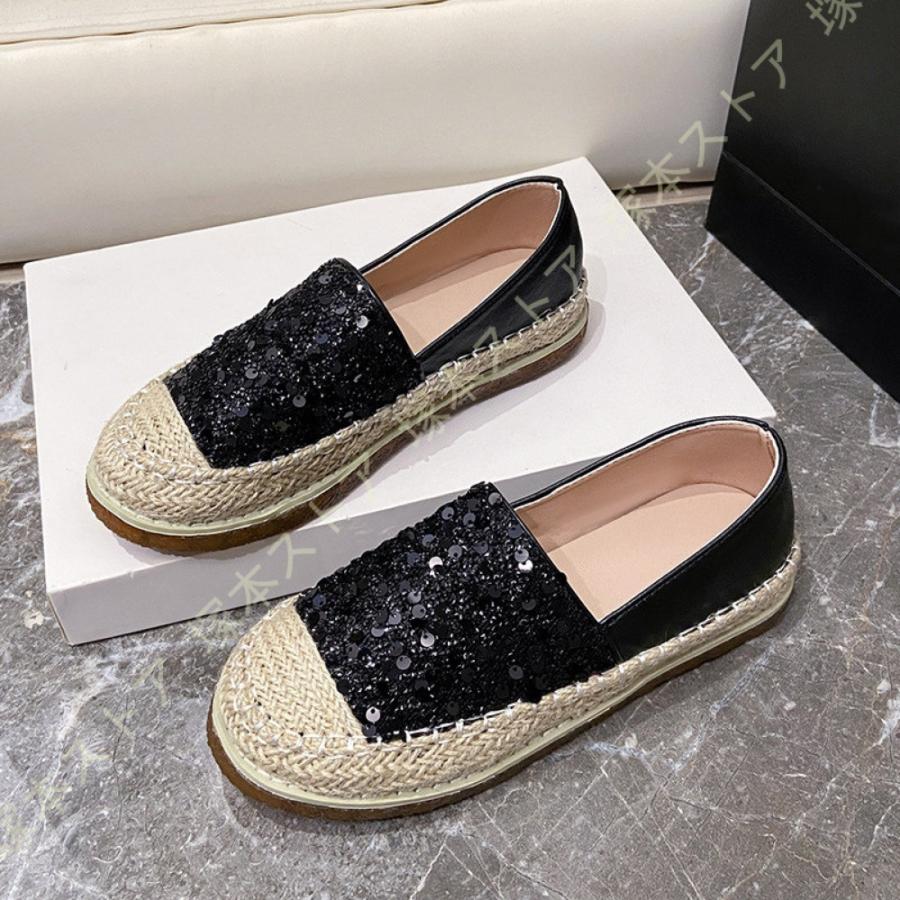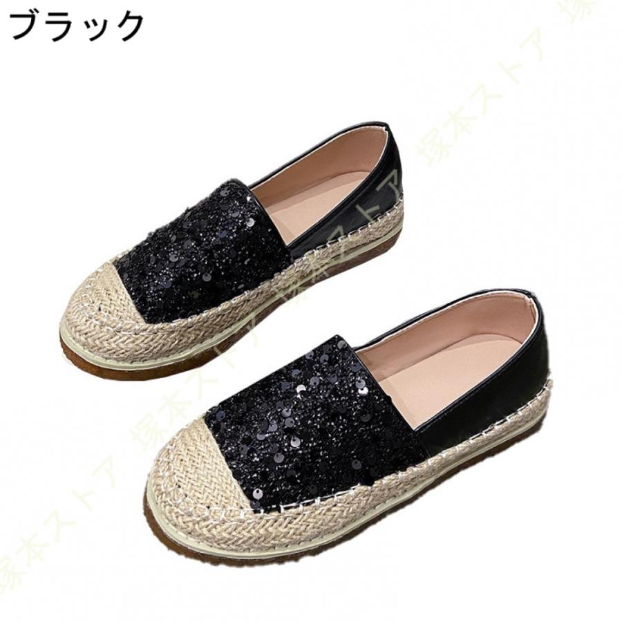 スリッポン ローファー レディース 厚底 歩きやすい キラキラ スパンコール 黒 通気性 エスパドリーユ ジュート巻き 可愛い おしゃれ カジュアルシューズ フラットシューズ 疲れない 滑り止め 幅広 春 夏 秋