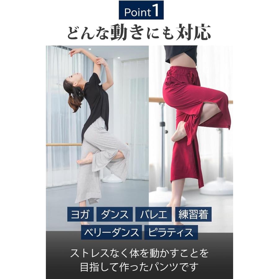 ヨガやティラピスなどスポーツで体を動かすのに最適なフレアパンツです。