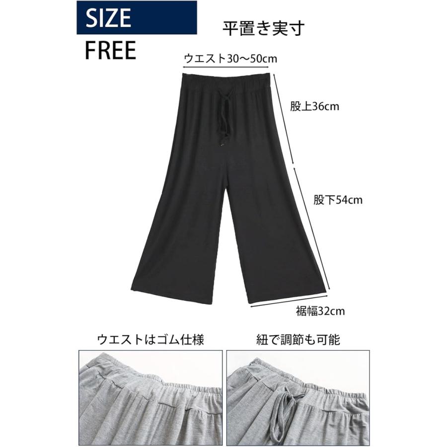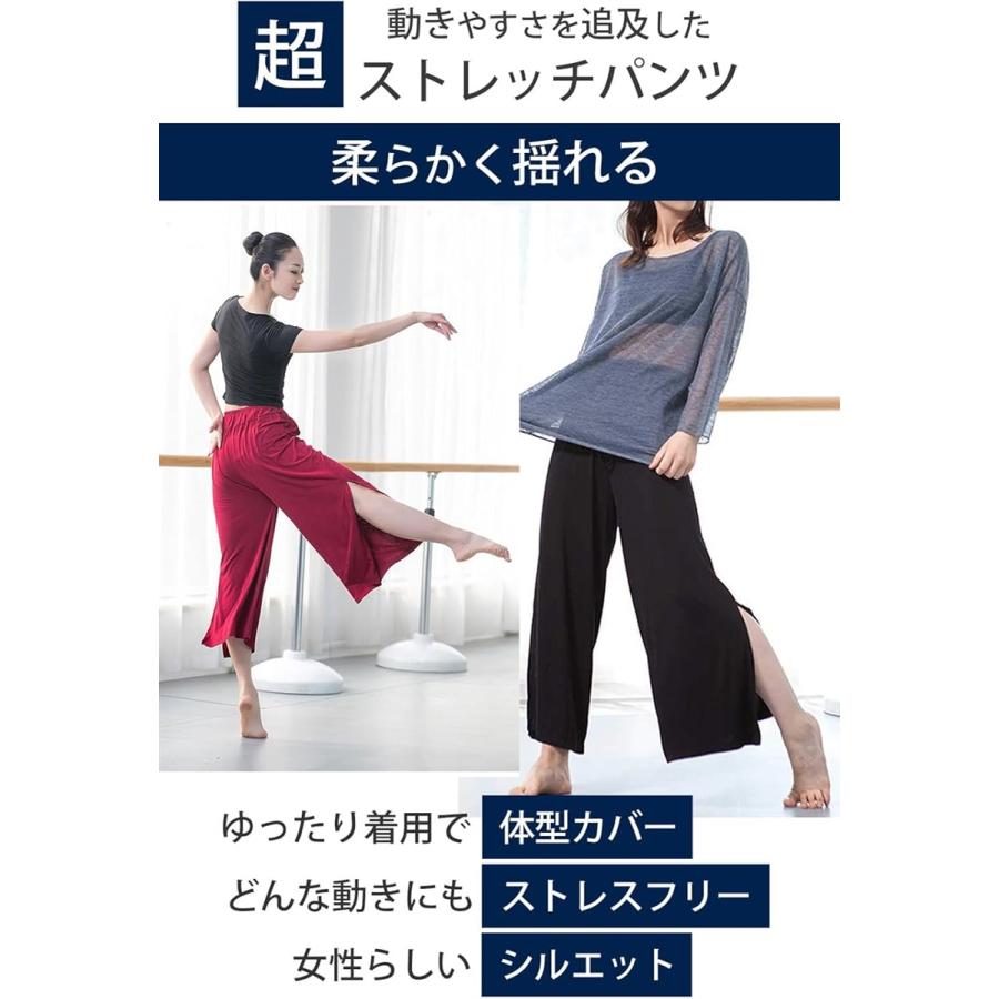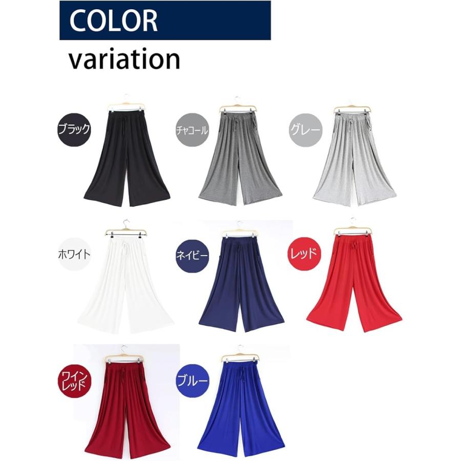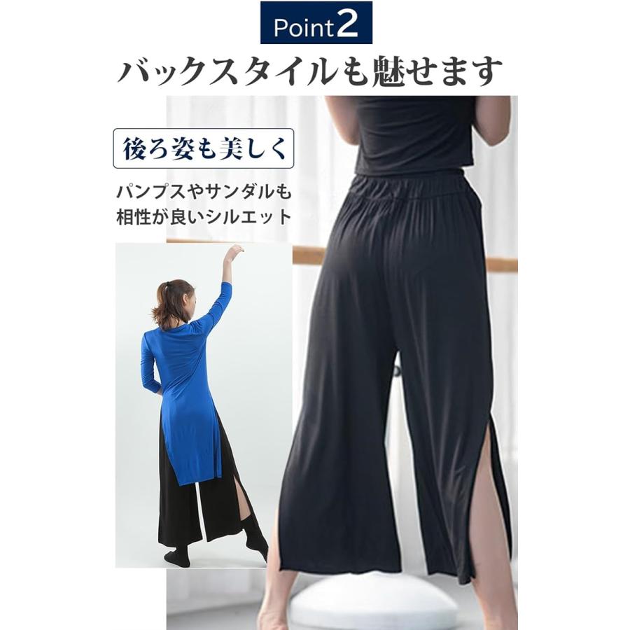 ガウチョ パンツ レディース ワイド ボトムス ヨガ 9分丈 スリット 無地(ブルー, Free Size)