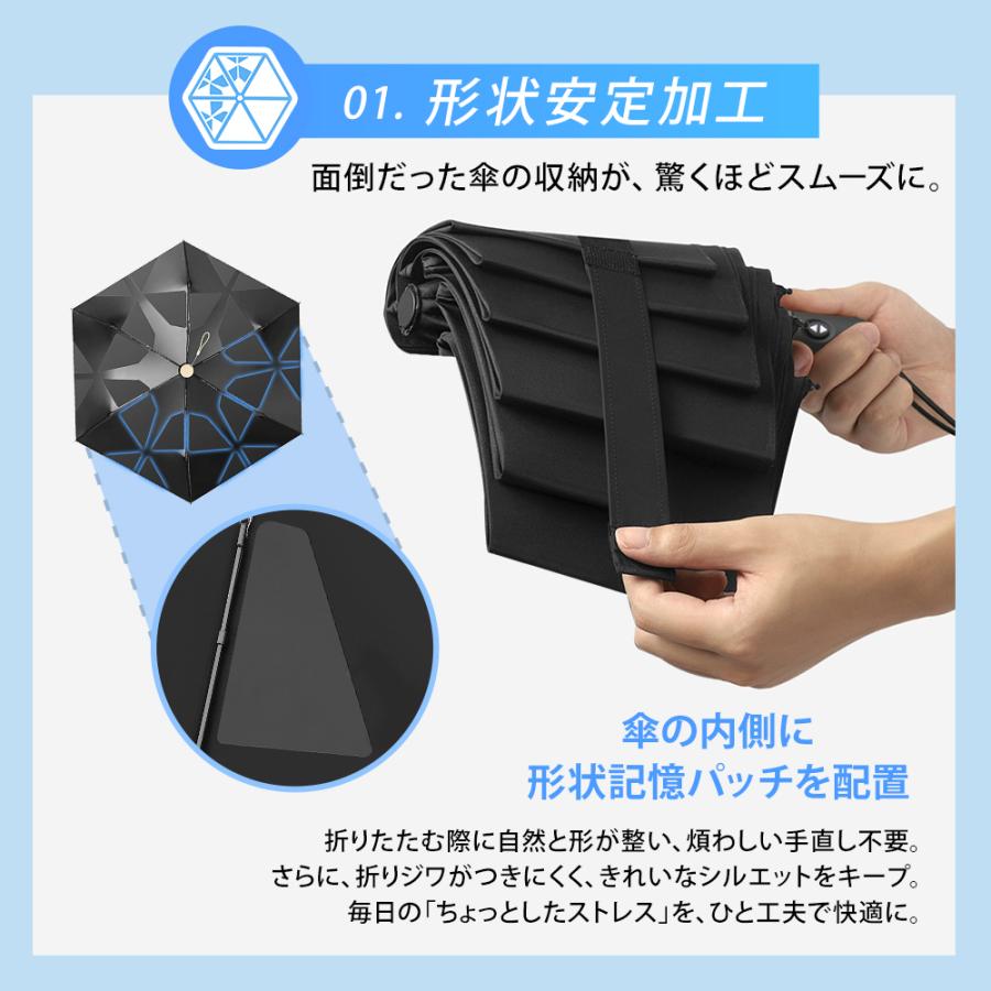 【2秒で畳める!形状記憶】 日傘 折りたたみ 超軽量 完全遮光 コンパクト レディース メンズ 晴雨兼用 UVカット UPF50+ 6本骨 3段 耐風 遮熱