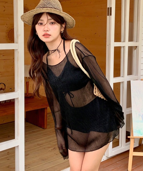 水着 シアートップス ハイウエストビキニ3点セット レディース