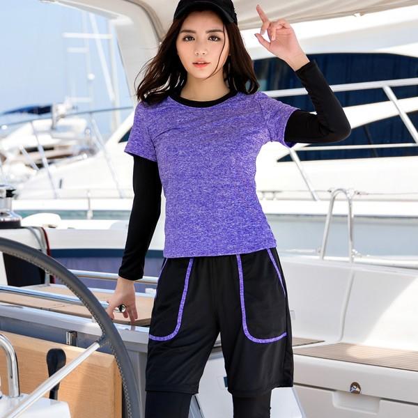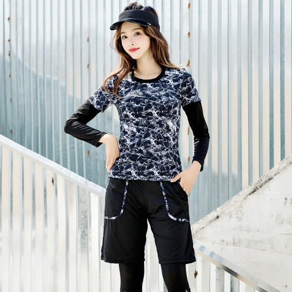 TeddyShop フィットネス水着 レディース 30代 40代 20代 50代 ママ 体型カバー 長袖ラッシュガード 4点セット