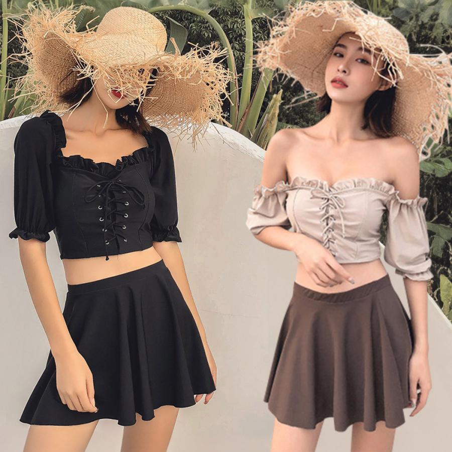 TeddyShop 水着 レディース ビキニ オフショルダー 2way フリル スカート 3点セット 体型カバー 20代 30代 ママ水着